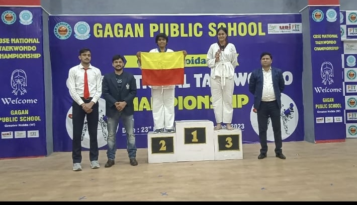 Brahmi Khidrapur's of class 8th has made remarkable achievement in Taekwondo adds another chapter to our winning streak. His dedication and skill led him to secure the second position at the cluster level competition, earning him a well-deserved spot at the national level. Undeterred by the fierce competition, Brahmi showcased exceptional talent once again, clinching the second place at the nationals held in Haryana, affirming our school's commitment to nurturing excellence in both academics and sports